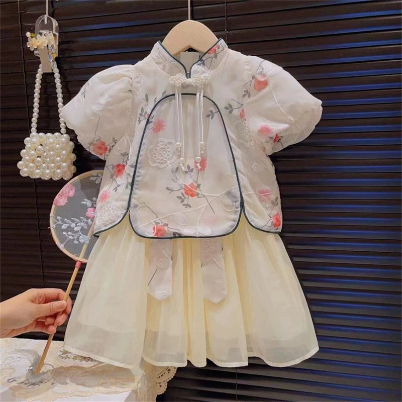 • Beige Guofeng Embroidered Top Skirt Suit – 4Y (120)