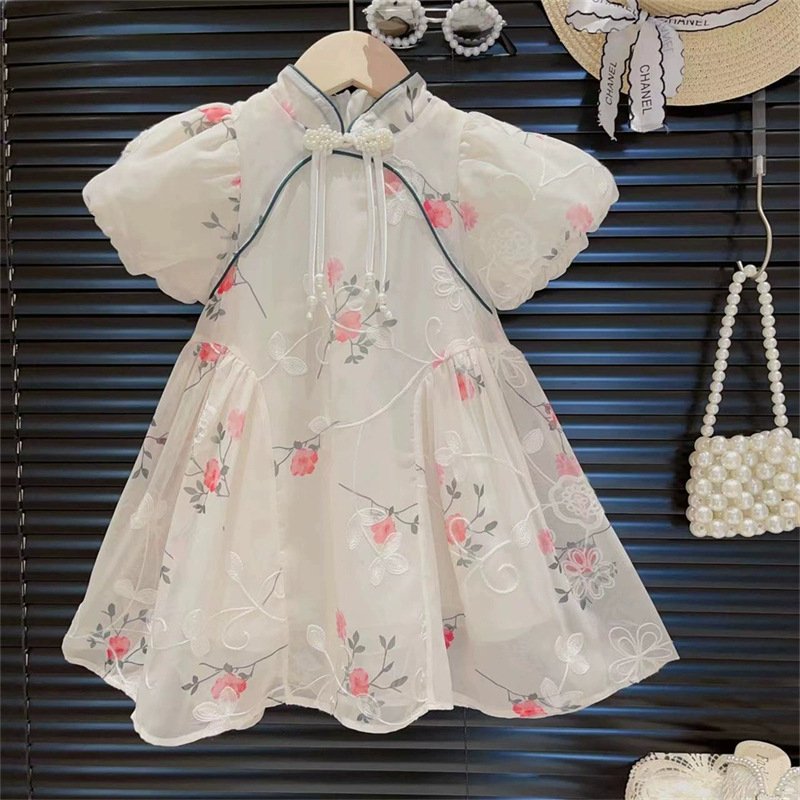 • Beige Tiny Flower Guofeng Dress – 6Y (130)
