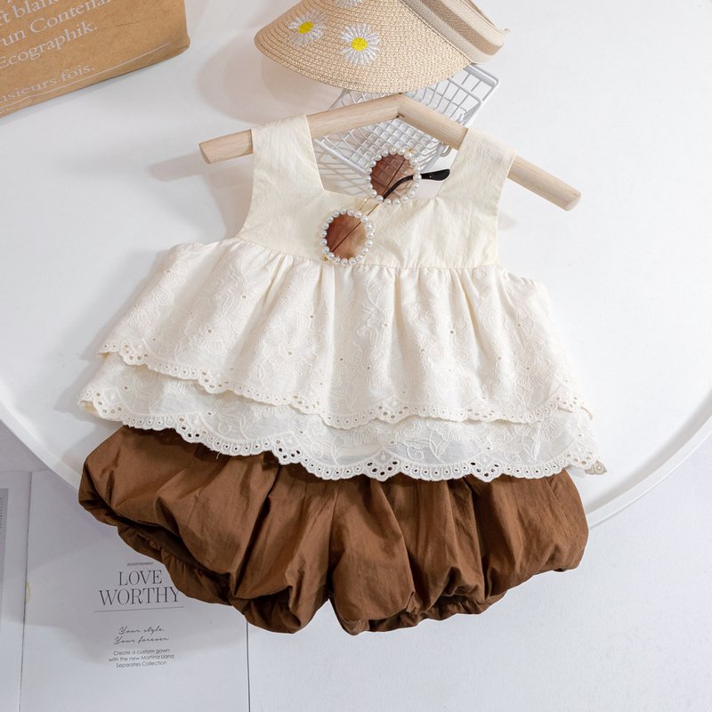 Kids Toddler Girls Casual Cute Lace Sleeveless Camisole Shorts Sets