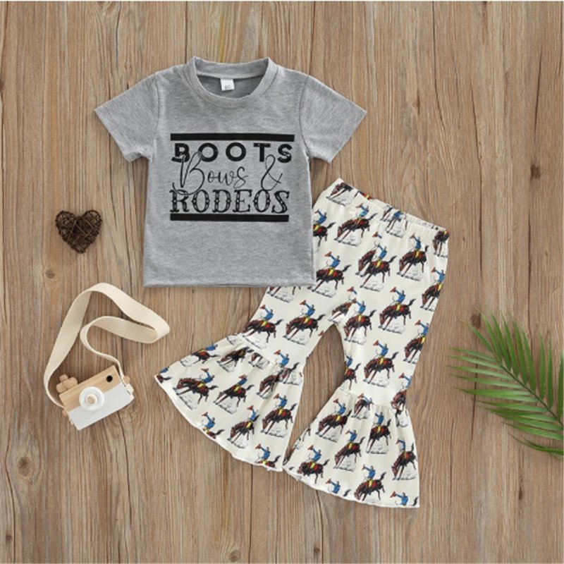 Kids Toddler Girls Casual Cute Letter Print Short Sleeve T-Shirt Flare Trousers Sets