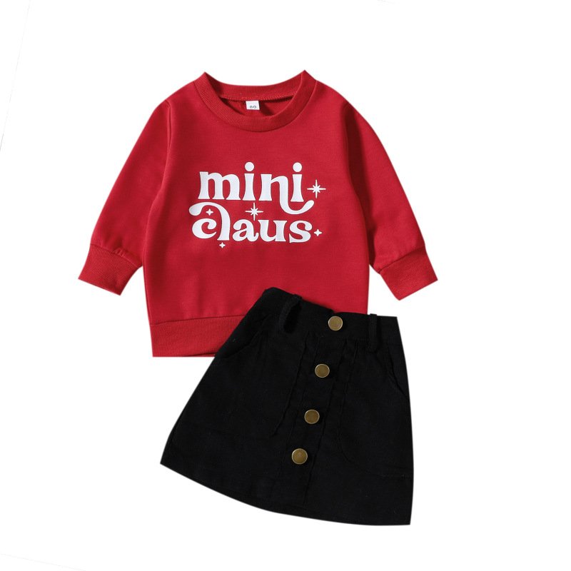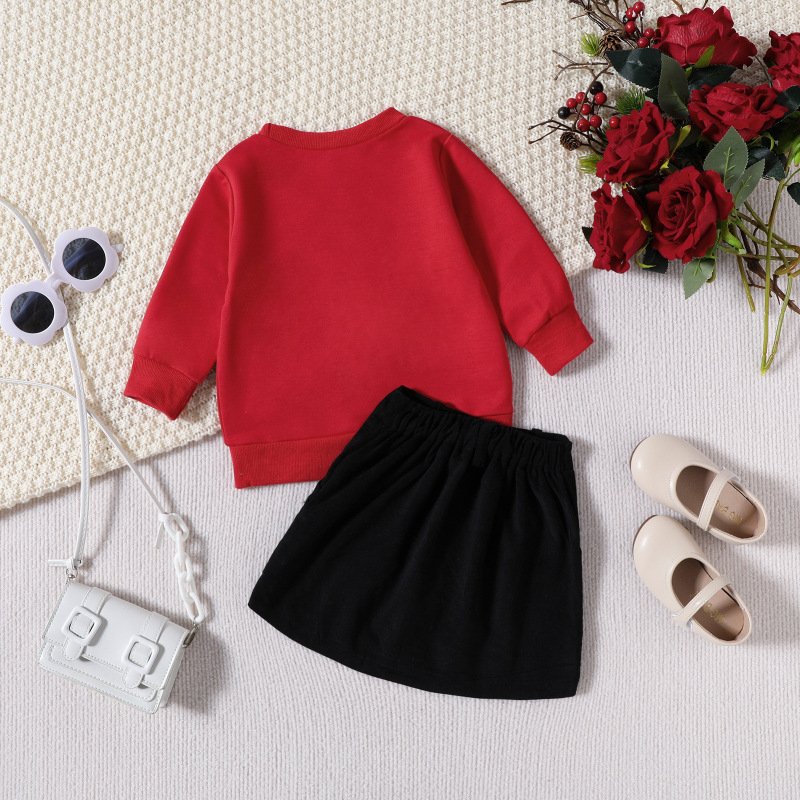 Kids Toddler Girls Casual Cute Letters Long Sleeve Round Neck Sweatshirts Skirt Sets