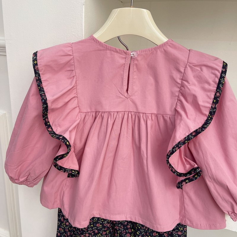 • Pink Ear – Edged Shirt Flower Pants Suit – 2Y (100)