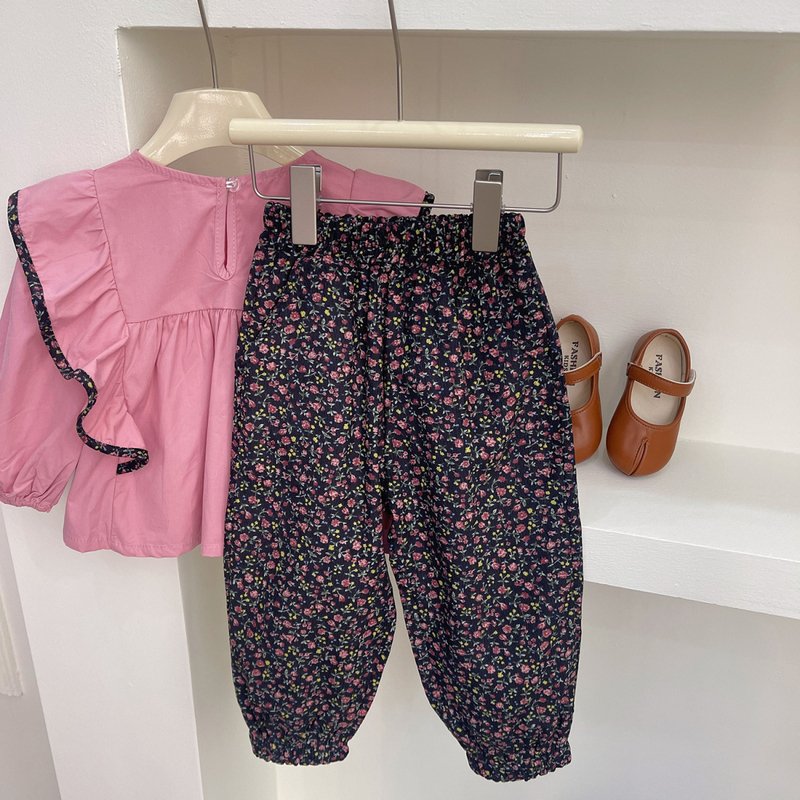 • Pink Ear – Edged Shirt Flower Pants Suit – 3Y (110)