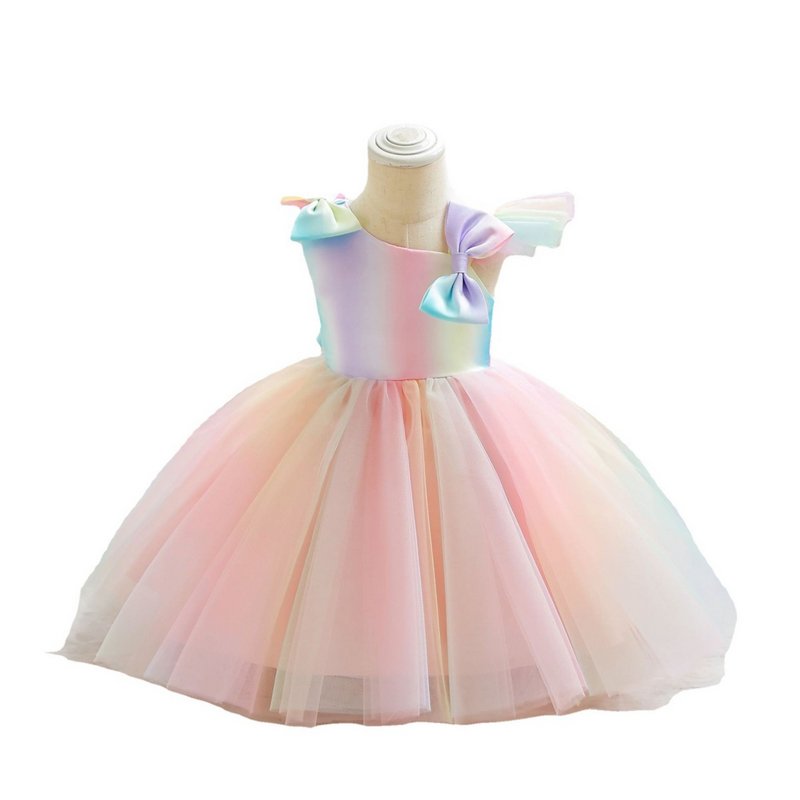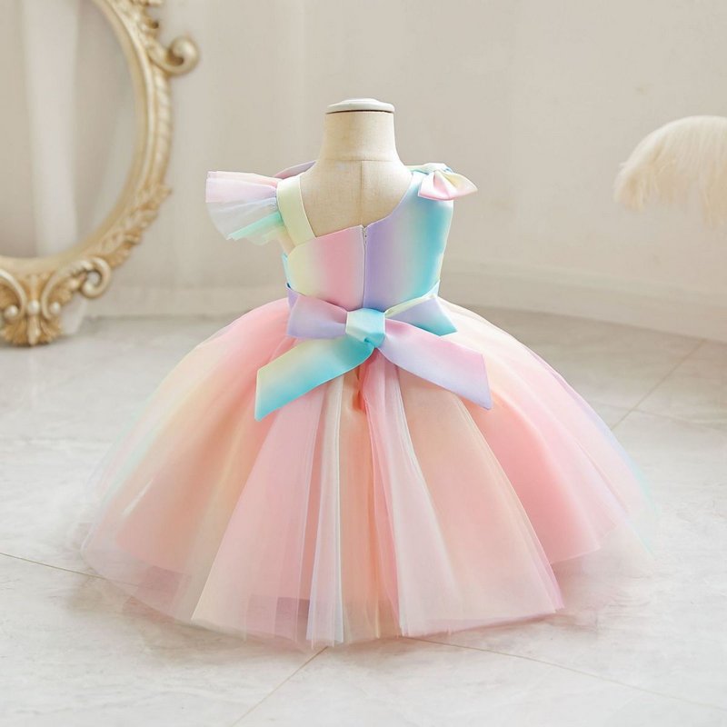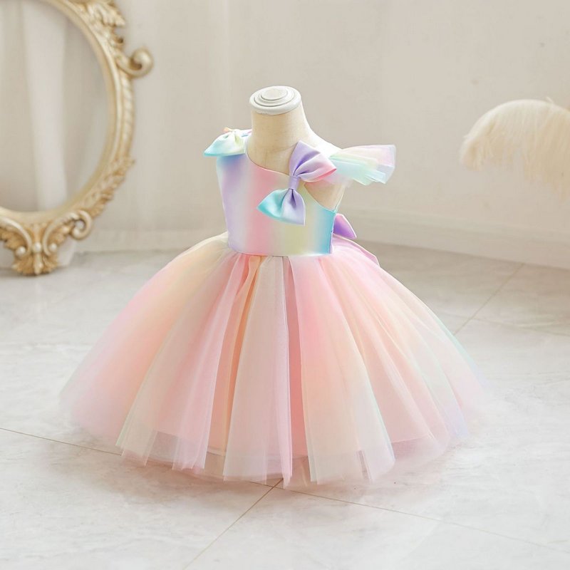 Kids Toddler Girls Casual Cute Party Bow Gradient Color Mesh Sleeveless Tutu Princess Dress
