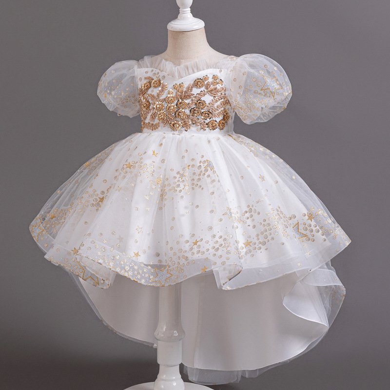 Kids Toddler Girls Casual Cute Party Sequins Flower Mesh Short Sleeve Tutu Dress