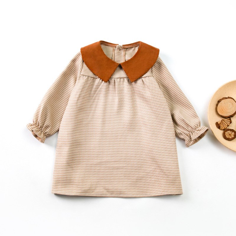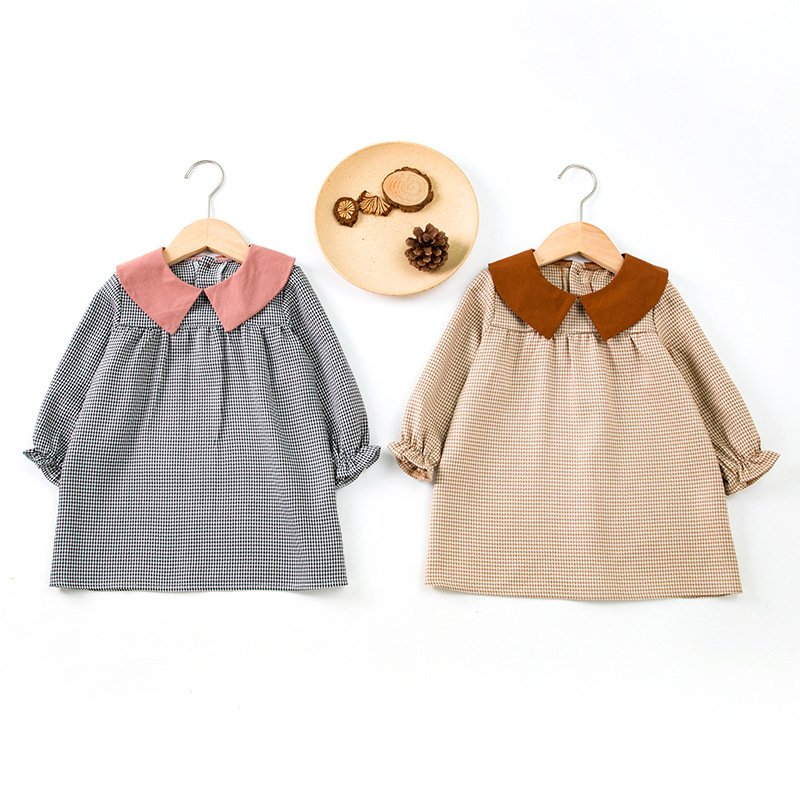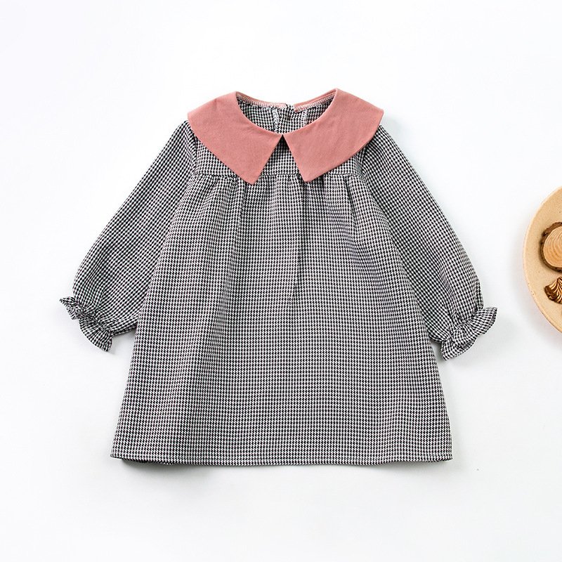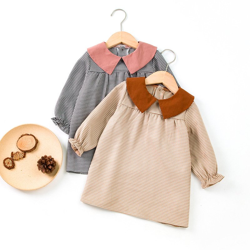 Kids Toddler Girls Casual Cute Playid Print Long Sleeve Peter Pan Collar Dress