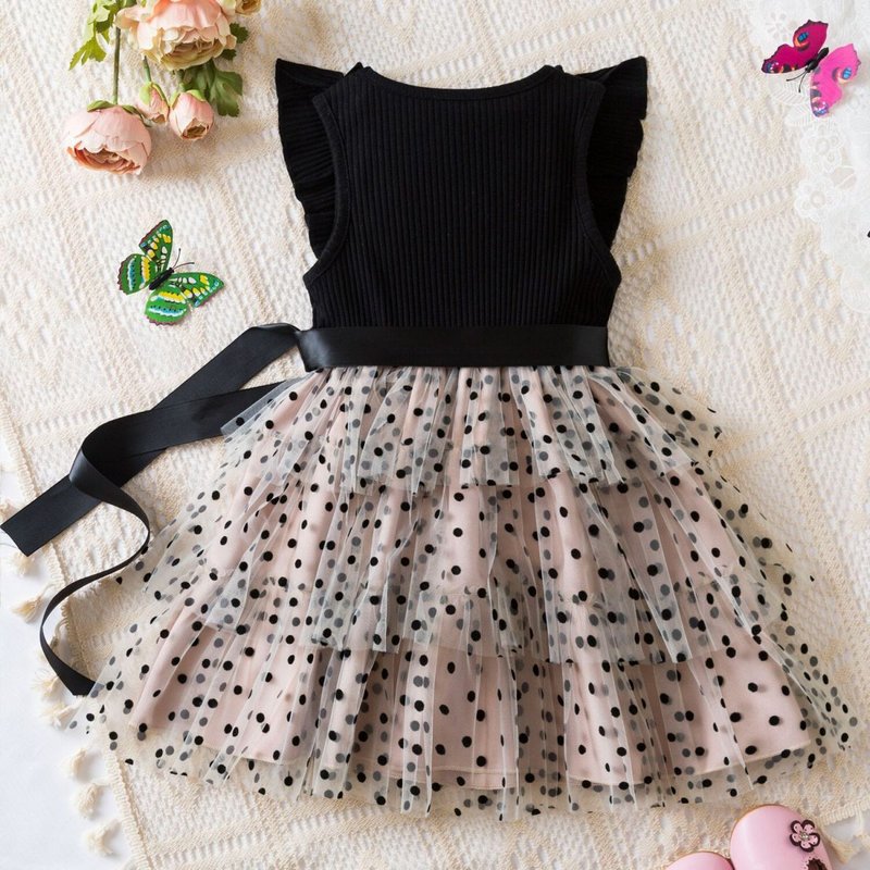 Kids Toddler Girls Casual Cute Polka Dot Bow Sleeveless Mesh Dress