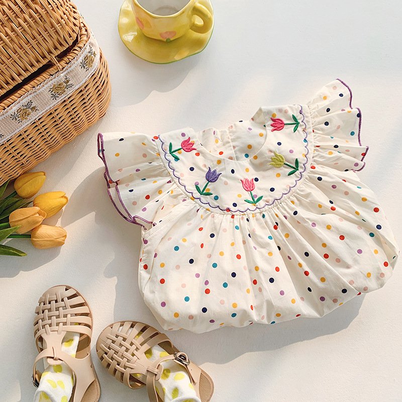 Kids Toddler Girls Casual Cute Polka Dot Print Fluttering Sleeve Dress