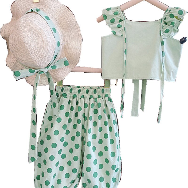 • Green Polka Dot Sleeveless Pants Suit – 4Y (120)