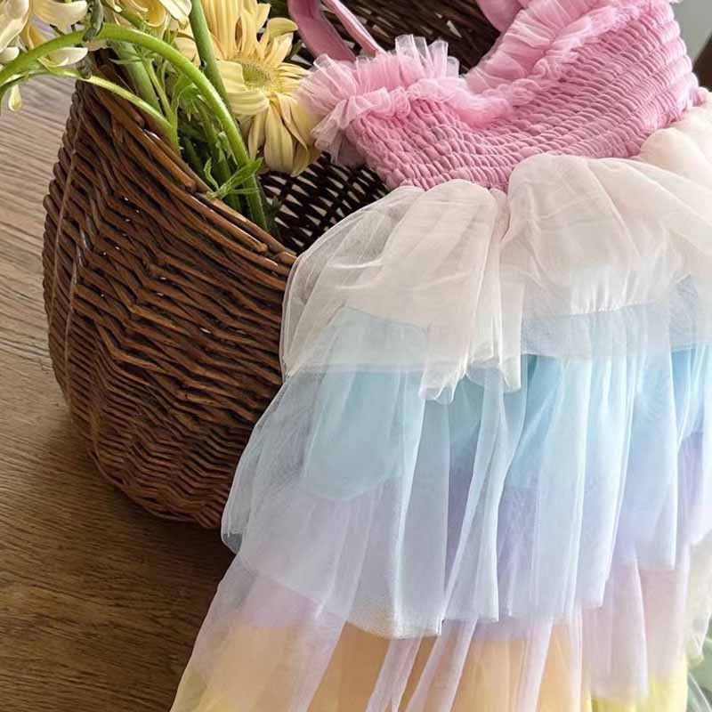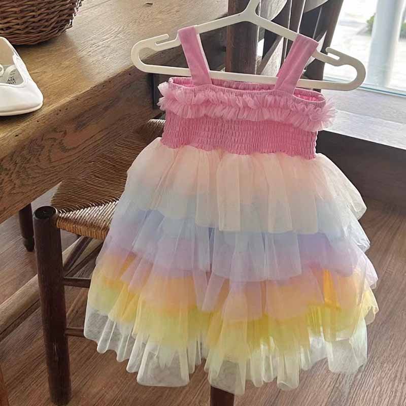Kids Toddler Girls Casual Cute Rainbow Mesh Strap Dress
