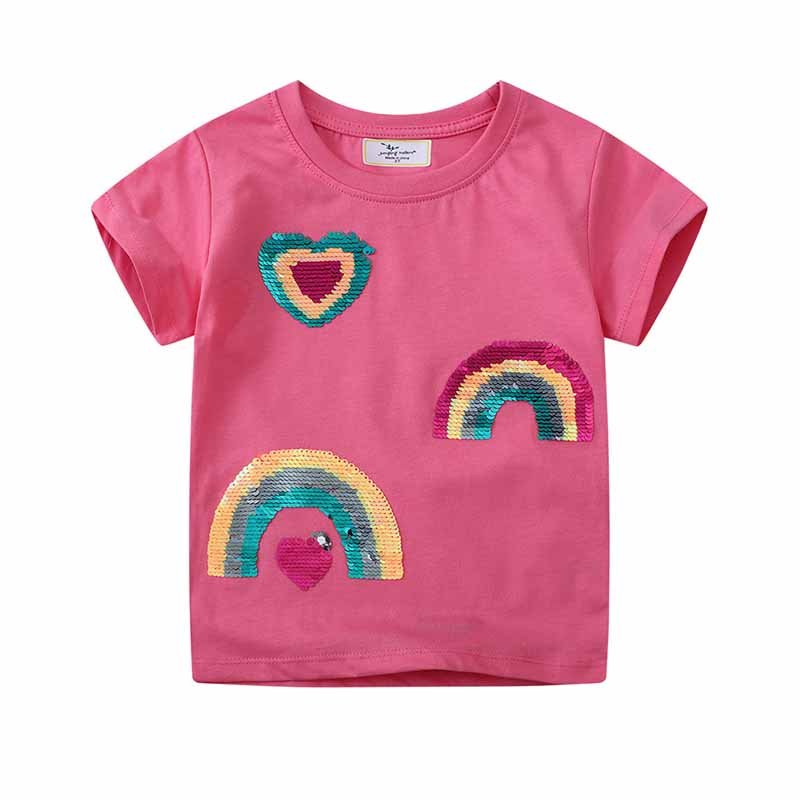 Kids Toddler Girls Casual Cute Rainbow Sequins Short Sleeve T-Shirt