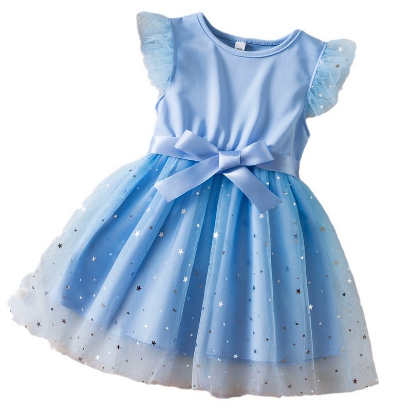 Kids Toddler Girls Casual Cute Sequins Bow Fluttering Sleeve Mesh Dress