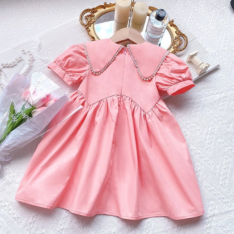 Kids Toddler Girls Casual Cute Short Sleeve Peter Pan Collar Dress