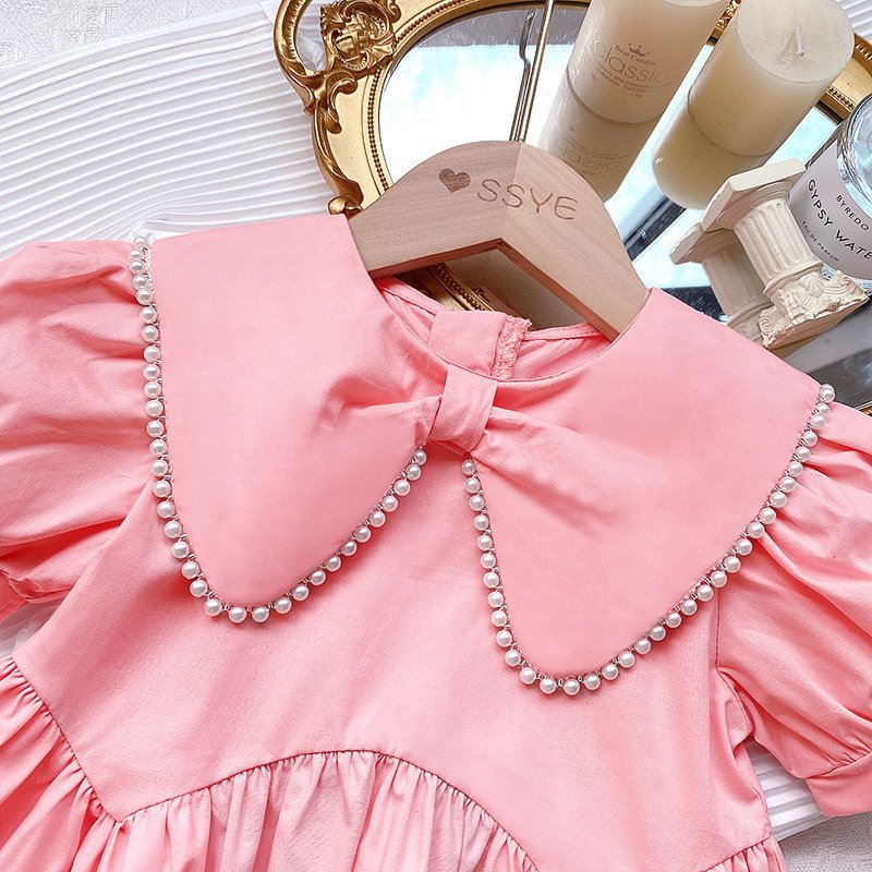 • Pink Pearl Lapel Dress – 6Y (130)