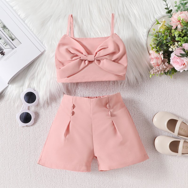 Kids Toddler Girls Casual Cute Solid Color Bow Sleeveless Camisole Shorts Set
