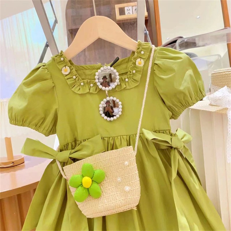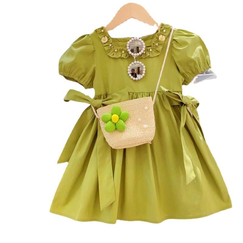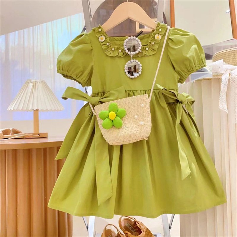 Kids Toddler Girls Casual Cute Solid Color Short Sleeve Dress
