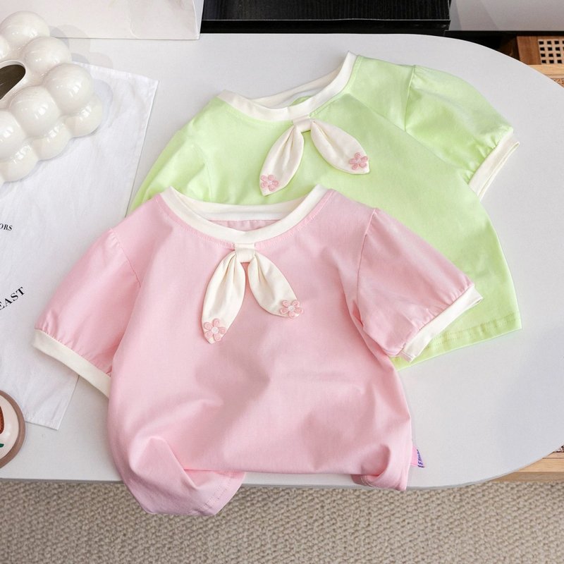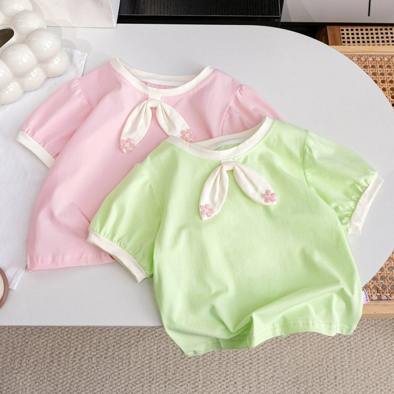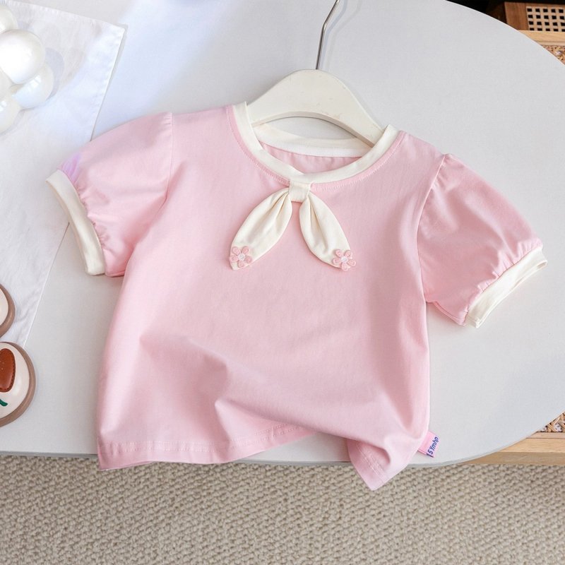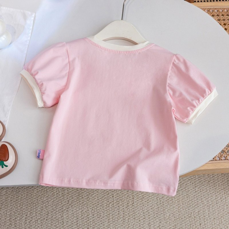 Kids Toddler Girls Casual Cute Solid Color Short Sleeve Round Neck T-Shirt