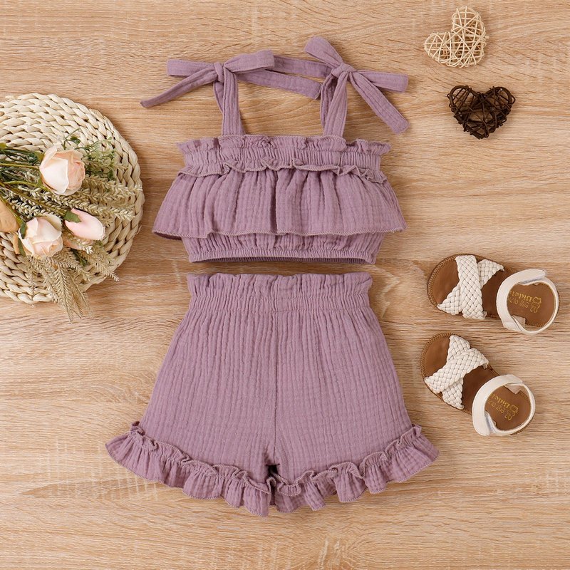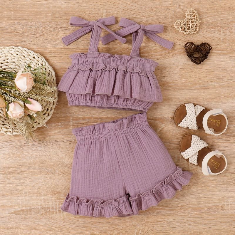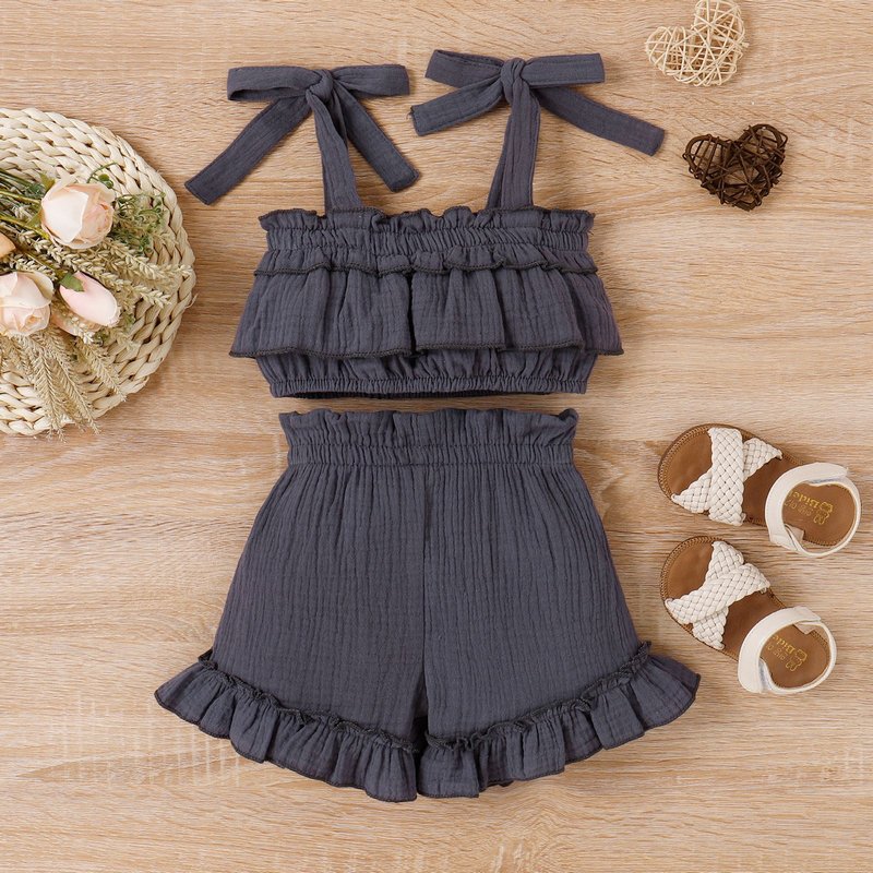 Kids Toddler Girls Casual Cute Solid Color Sleeveless Camisole Shorts Set