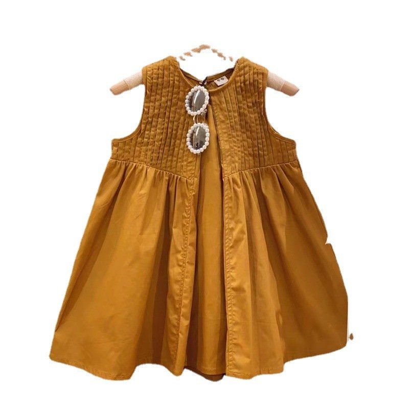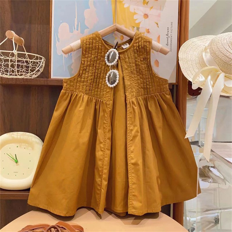 • Coffee Simple Sleeveless Dress – 4Y (120)