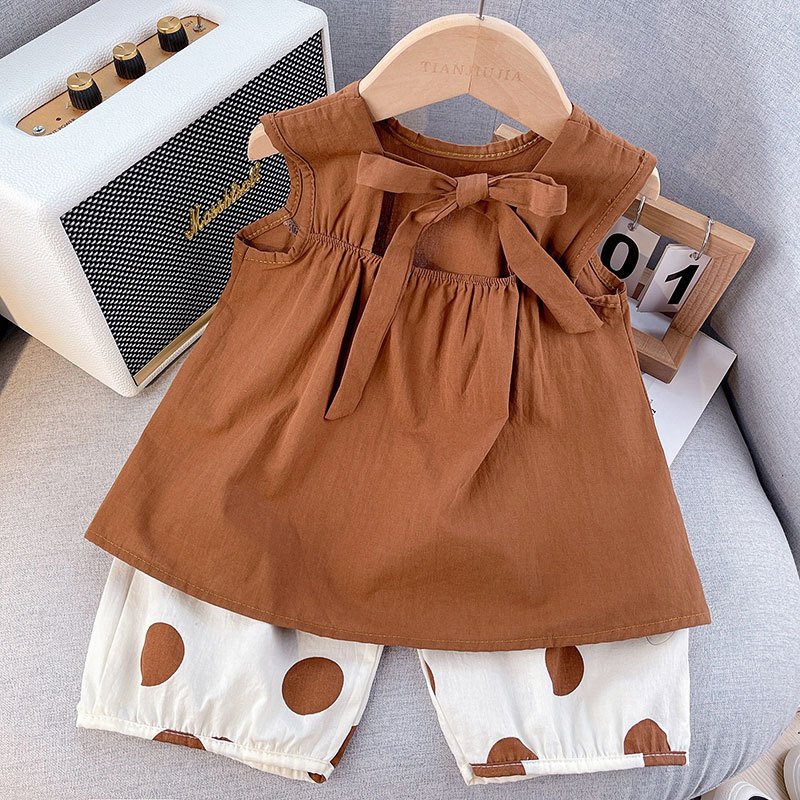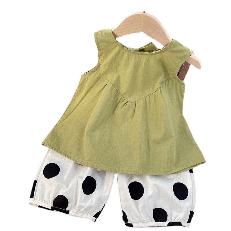 Kids Toddler Girls Casual Cute Solid Color Sleeveless Top Polka Dot Print Pants Set