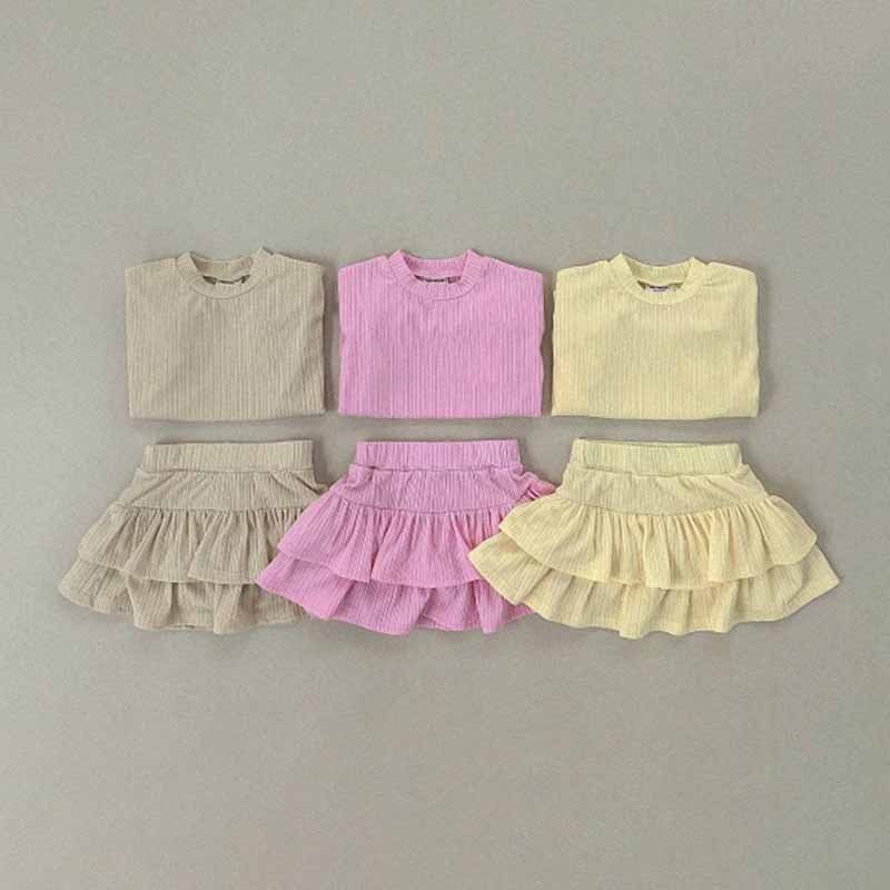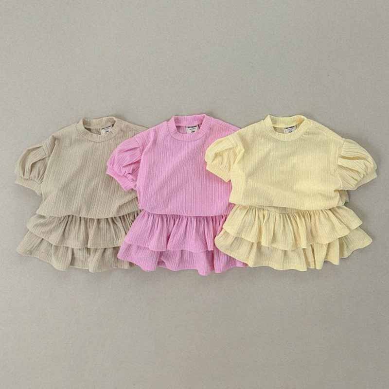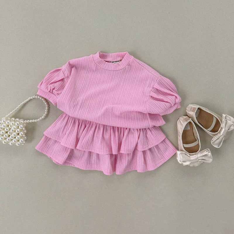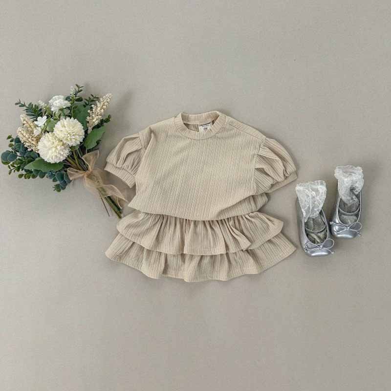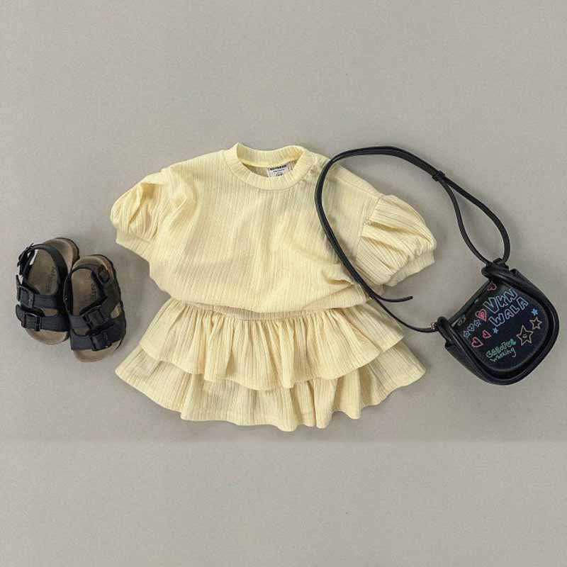 Kids Toddler Girls Casual Cute Solid Color Stripe Puff Sleeve Top Skirt Sets