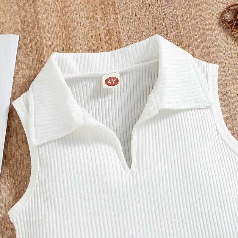 Kids Toddler Girls Casual Cute Solid Color Stripe Sleeveless Lapel T-Shirt Shorts Set