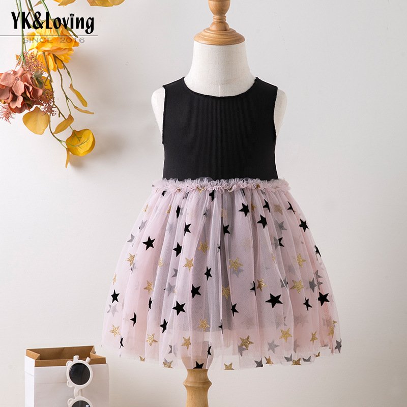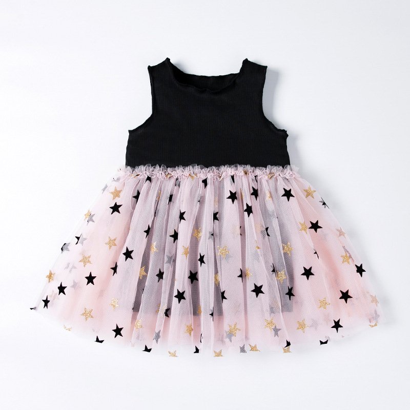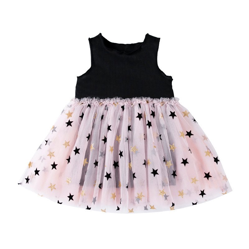 Kids Toddler Girls Casual Cute Star Mesh Tank Top Stitching Dress