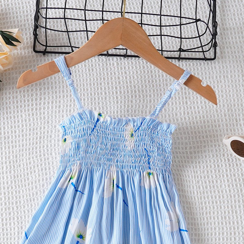 Kids Toddler Girls Casual Cute Stripe Flower Print Strap Dress