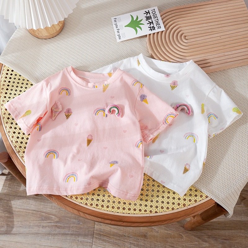 Kids Toddler Girls Casual Cute Sweet Alphabet Print Short Sleeve Round Neck T-Shirt