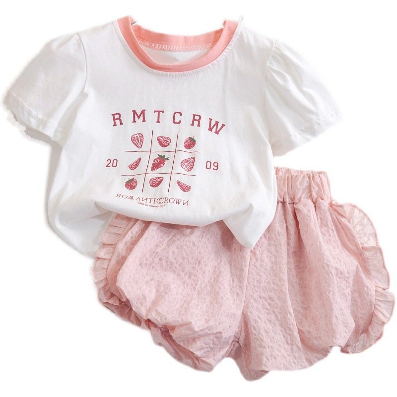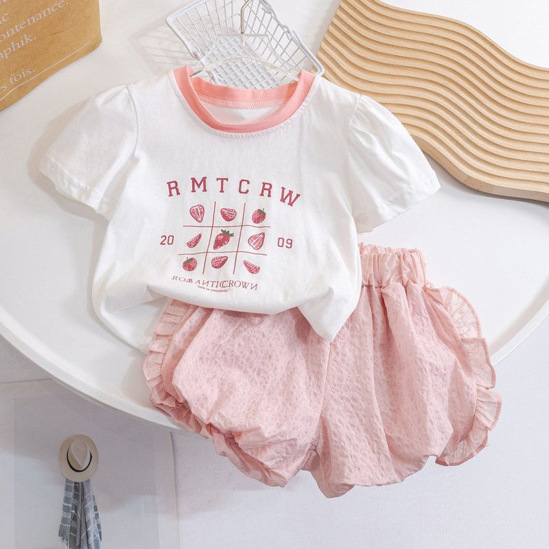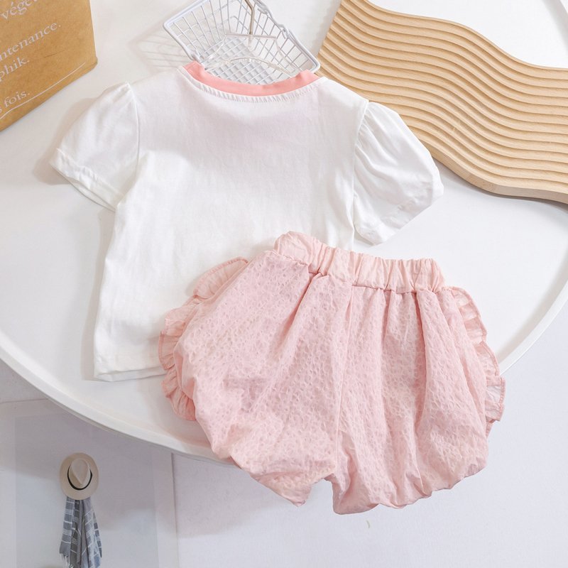 Kids Toddler Girls Casual Cute Sweet Alphabet Print Short Sleeve T-Shirt Shorts Sets