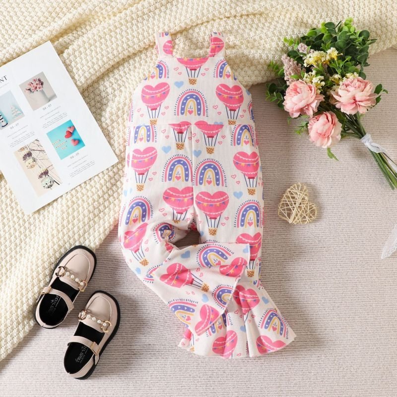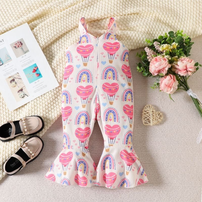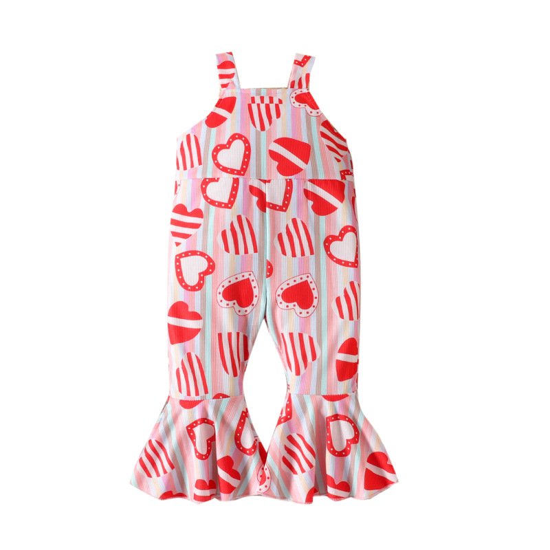Kids Toddler Girls Casual Cute Sweet Heart Print Sleeveless Flare Jumpsuits