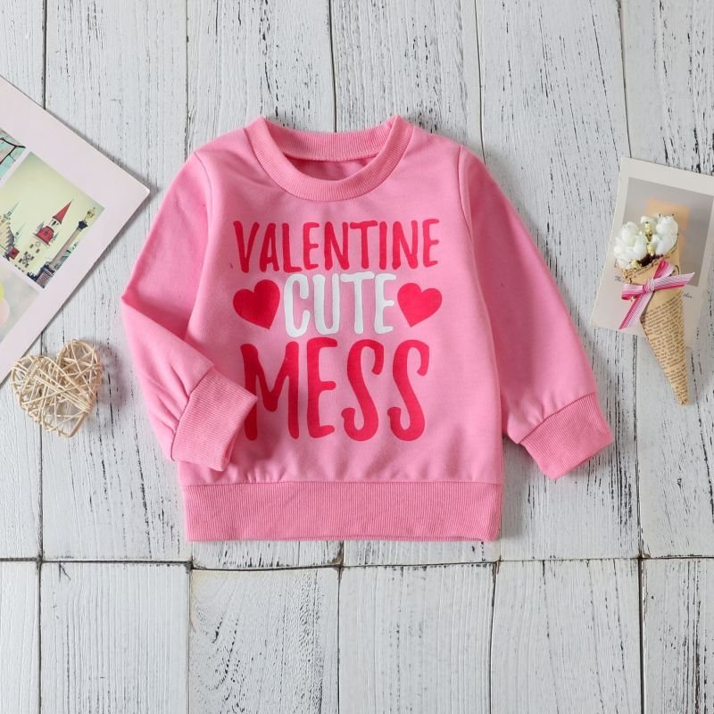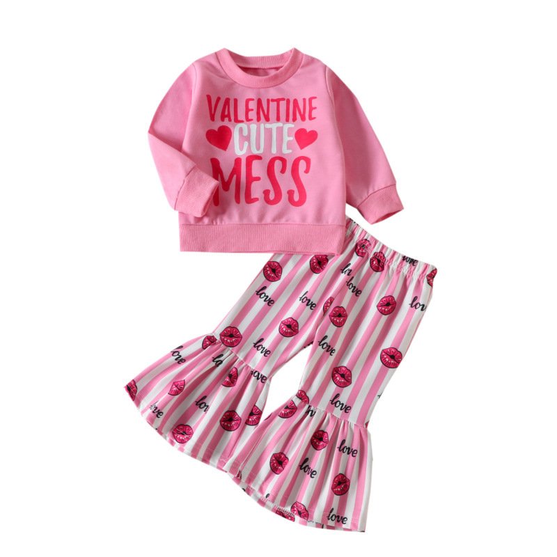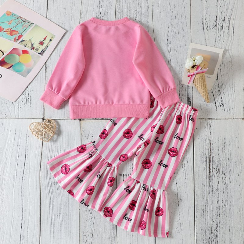 Kids Toddler Girls Casual Cute Sweet Letters Heart Print Long Sleeve Round Neck Sweatshirts Flare Trousers Set