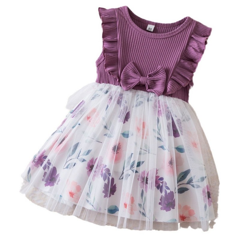 Kids Toddler Girls Casual Cute Tiny Flower Bow Sleeveless Mesh Dress