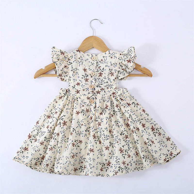 Kids Toddler Girls Casual Cute Tiny Flower Print Fluttering Sleeve Dress