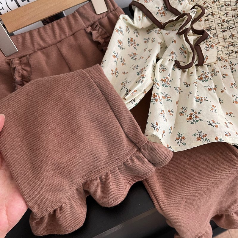 • Beige / Tiny Flower Wood Ear Blouse / Flared Pants Set – 4Y (120)