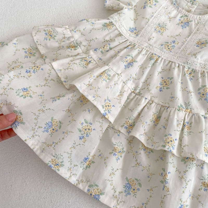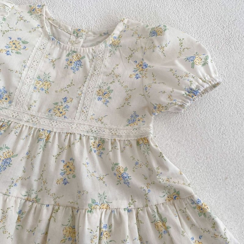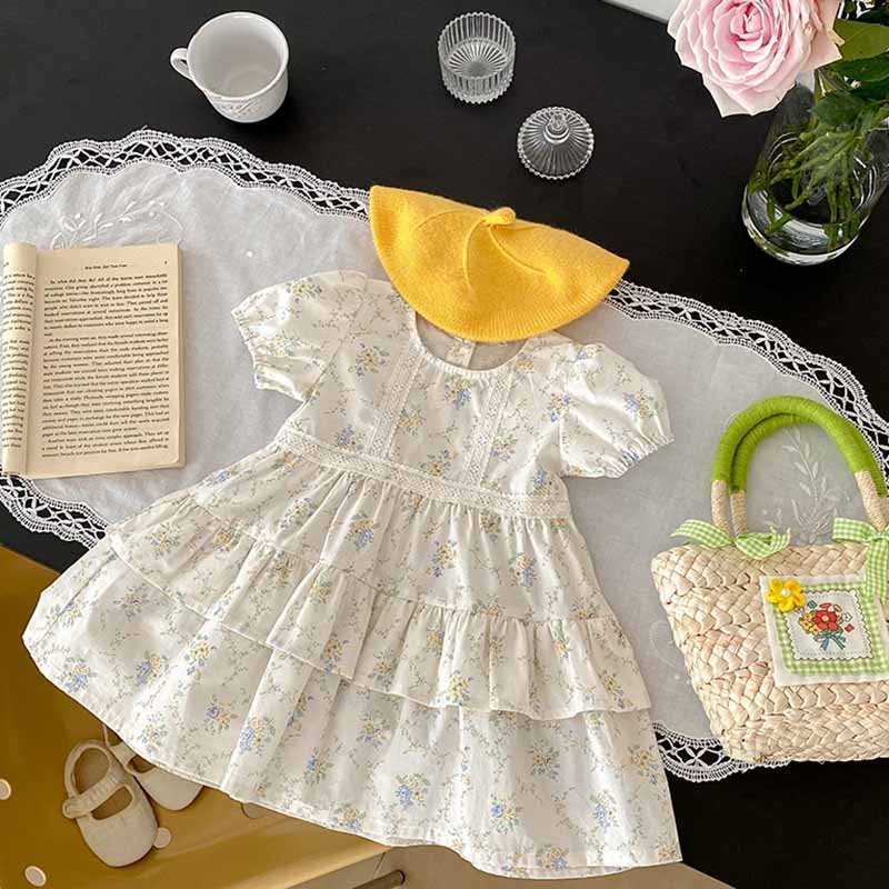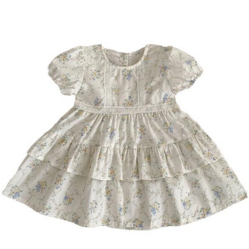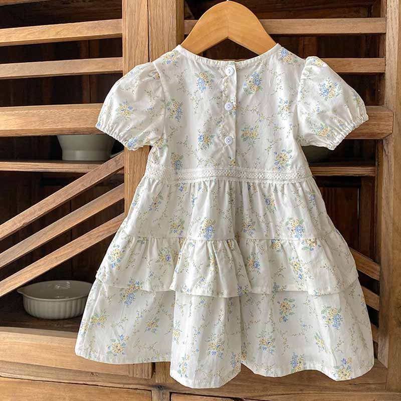 Kids Toddler Girls Casual Cute Tiny Flower Print Puff Sleeve Dress