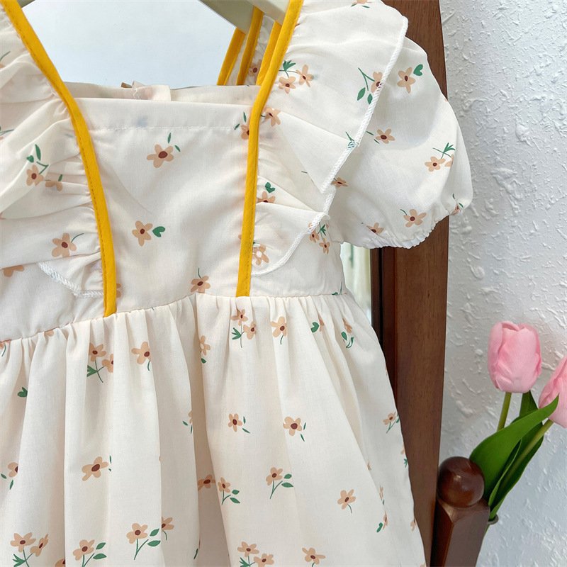 Kids Toddler Girls Casual Cute Tiny Flower Print Short Sleeve Dress