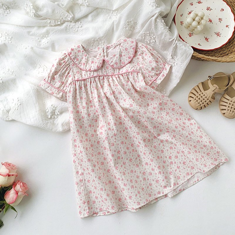 Kids Toddler Girls Casual Cute Tiny Flower Print Short Sleeve Dress