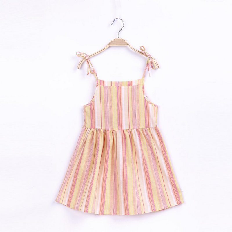 • Cotton And Linen Pink Vertical Strip – 4Y (120)