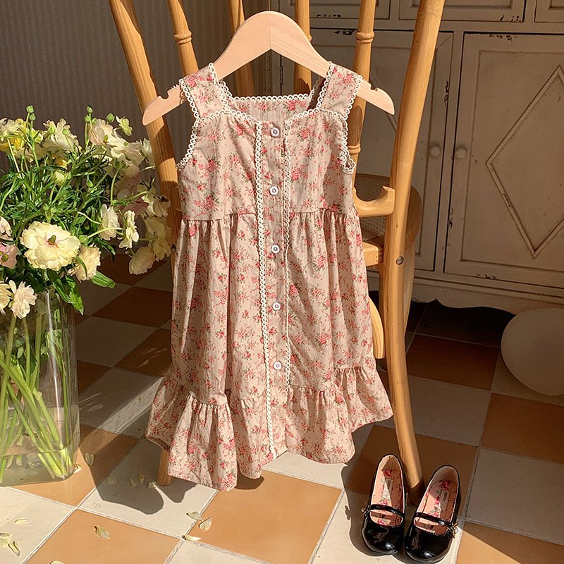 Kids Toddler Girls Casual Cute Tiny Flower Print Strap Dress