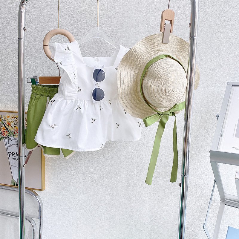 Kids Toddler Girls Casual Cute Tiny Flower Raglan Sleeve Top Shorts Set