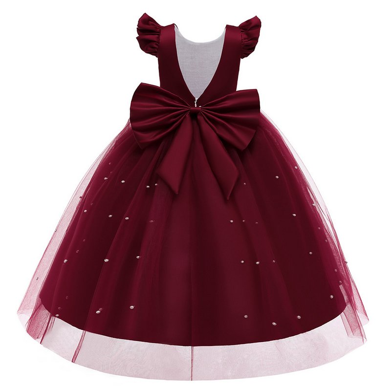 Kids Toddler Girls Casual Solid Color Pearl Mesh Bow Raglan Sleeve Party Tutu Dress