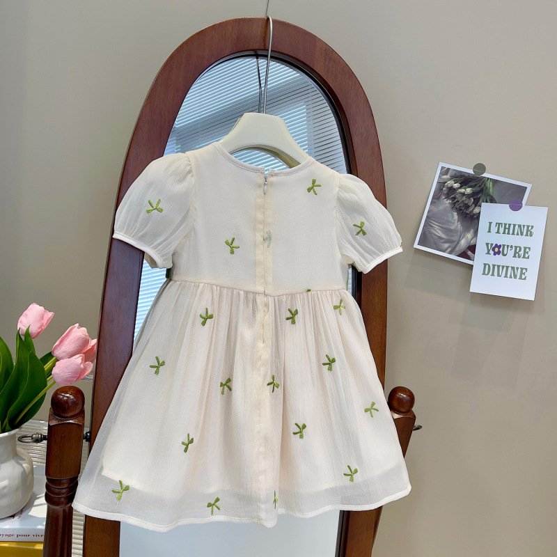 Kids Toddler Girls Cute Bow Embroidery Short Sleeve Round Neck Dress