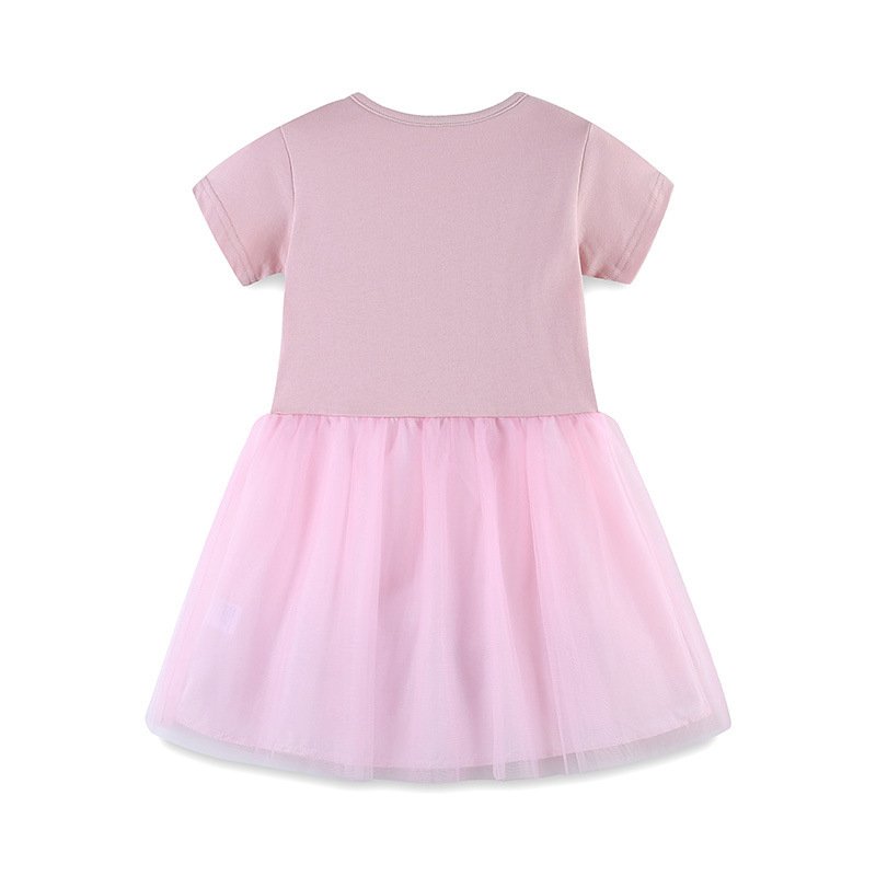 Kids Toddler Girls Cute Cartoon Print Short Sleeve V Neck Mesh Dress