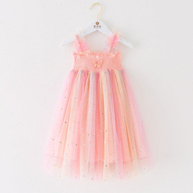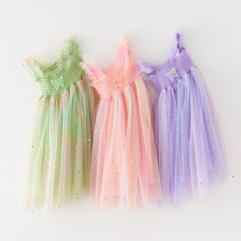 Kids Toddler Girls Cute Gradient Color Mesh Sleeveless Party Tutu Princess Dress