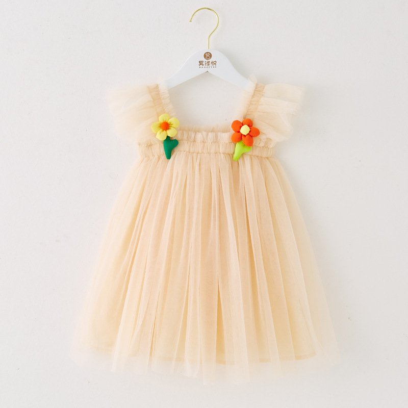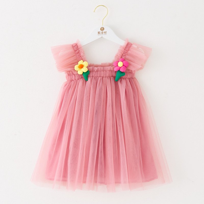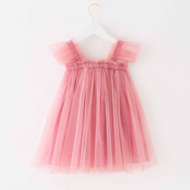 Kids Toddler Girls Cute Solid Color Mesh Fluttering Sleeve Party Tutu Princess Dress