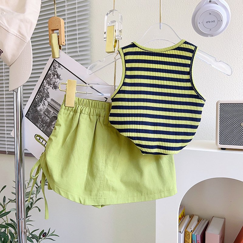 • Green Stripe Vest Loose Shorts Two – PCS Set – 2Y (100)