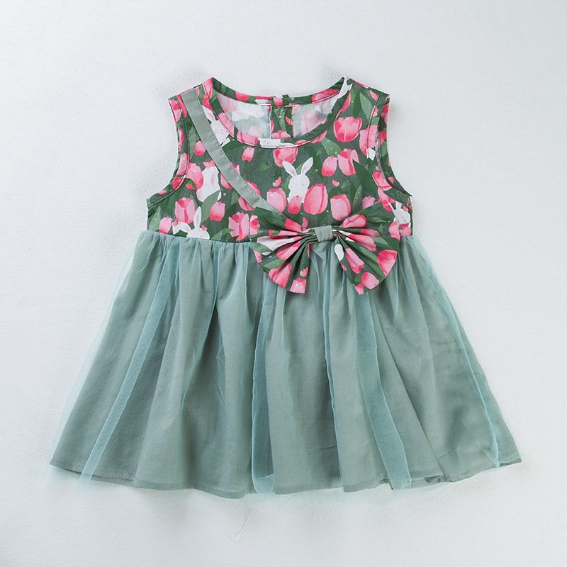 Kids Toddler Girls Easter Casual Cute Bunny Floral Print Sleeveless Round Neck Dress
