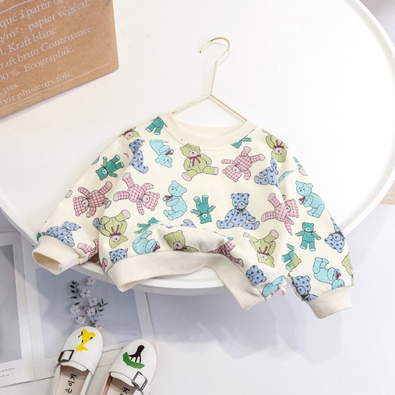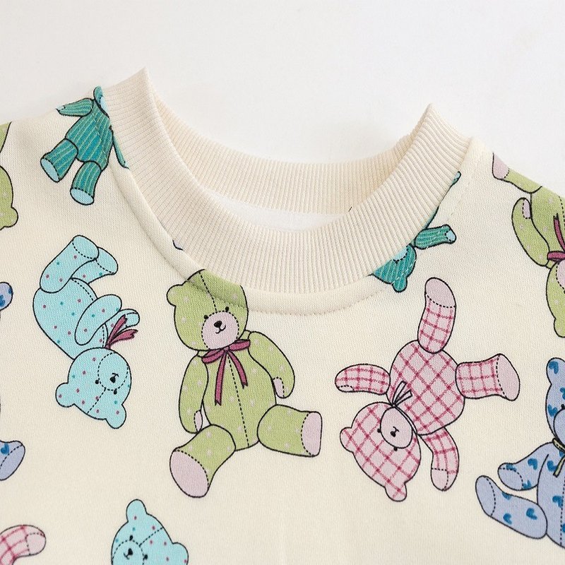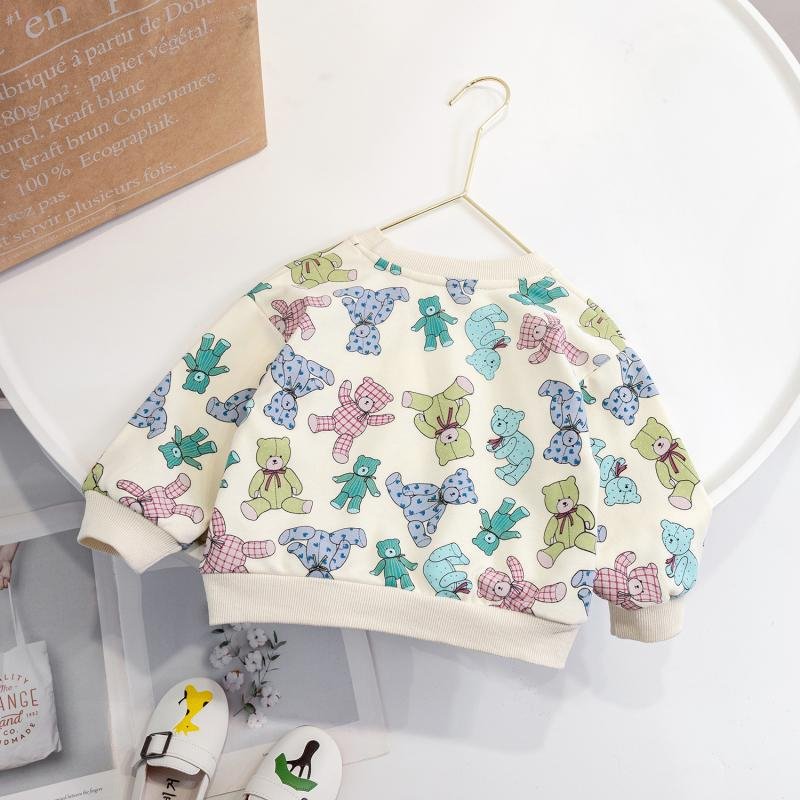 Kids Toddler Girls Fashion Bear Print Crew Neck Long Sleeve Sweatshirt