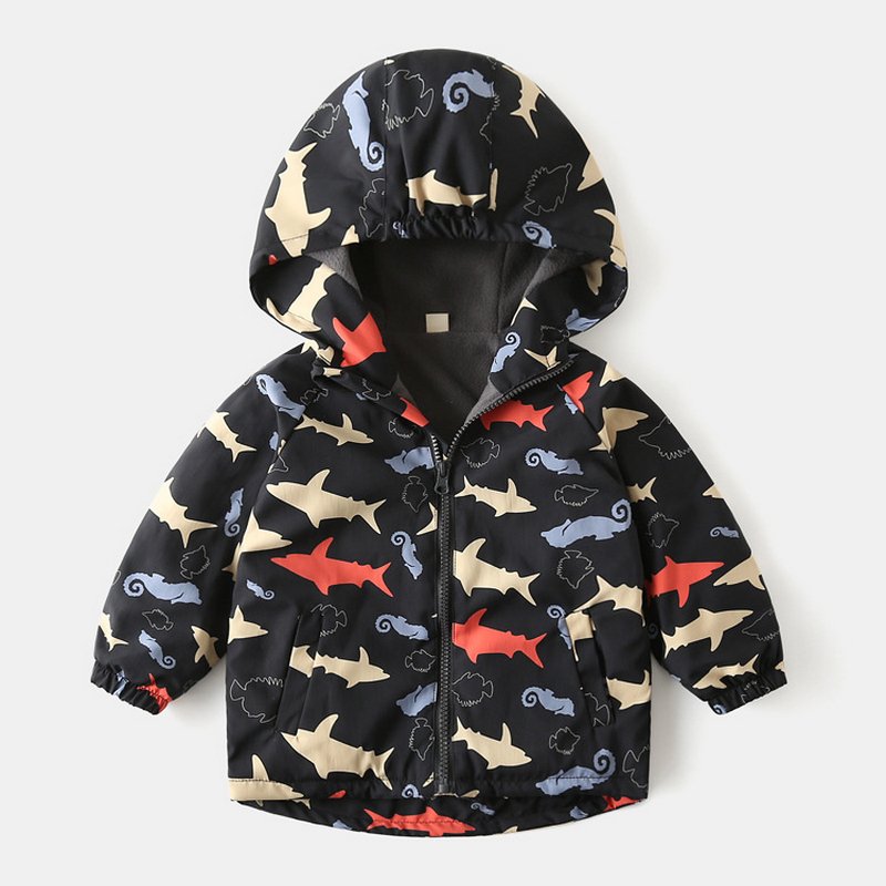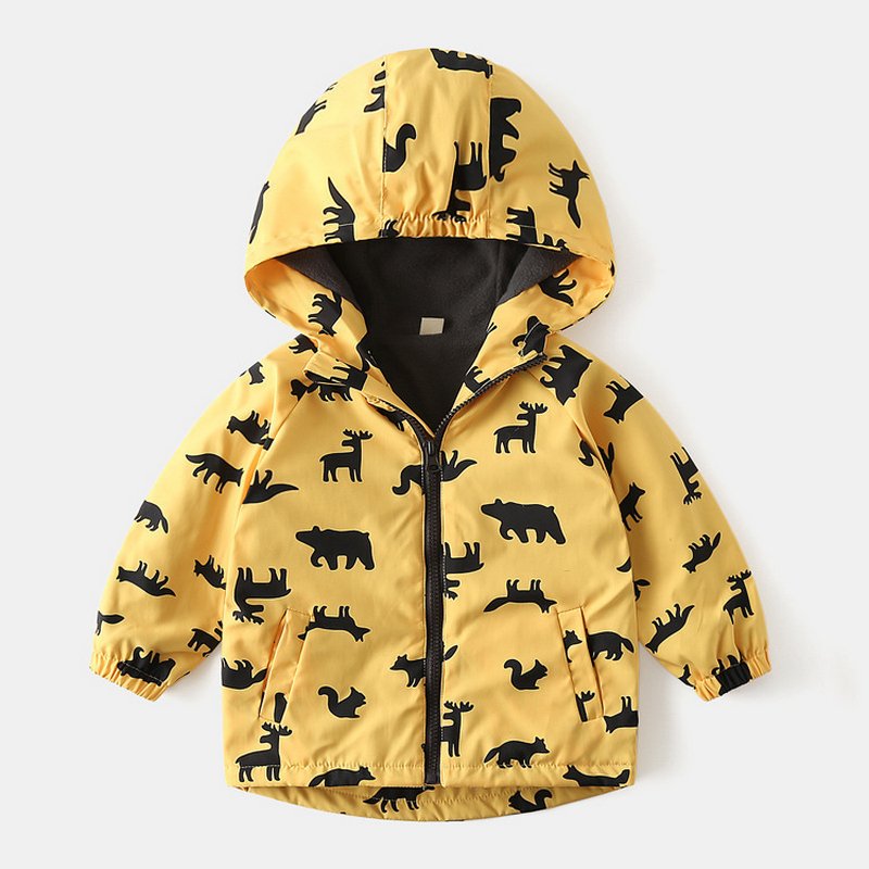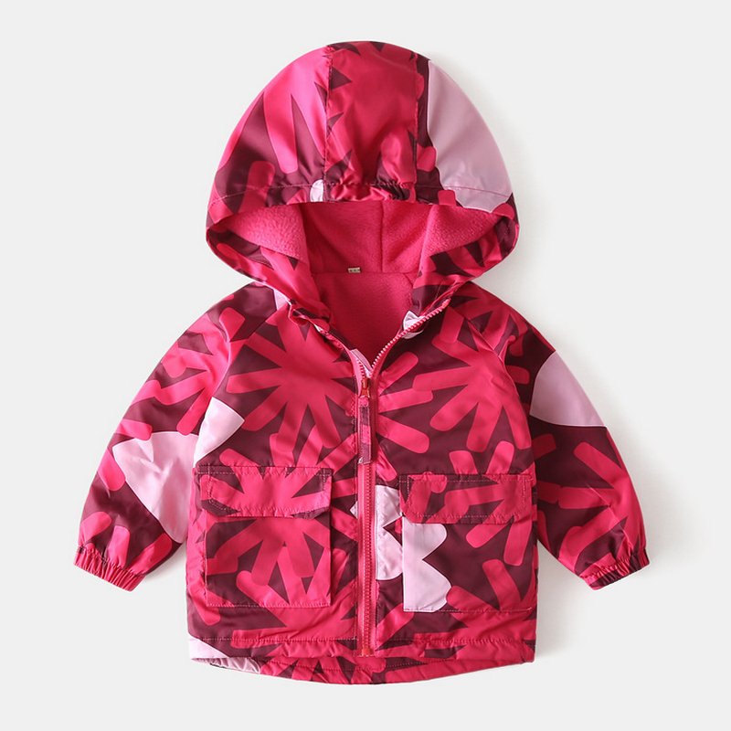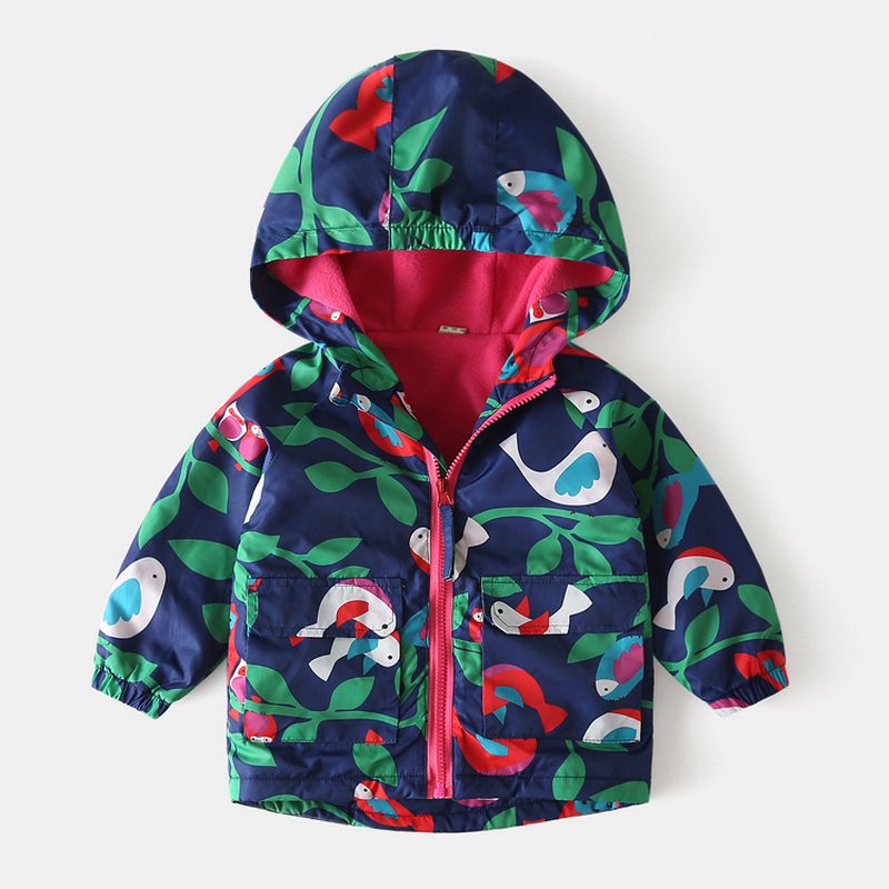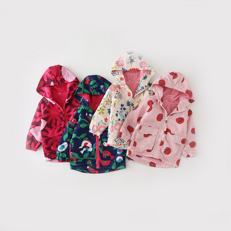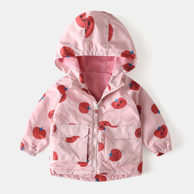 Kids Toddler Girls Fashion Cartoon Print Fleece Midi Windbreaker